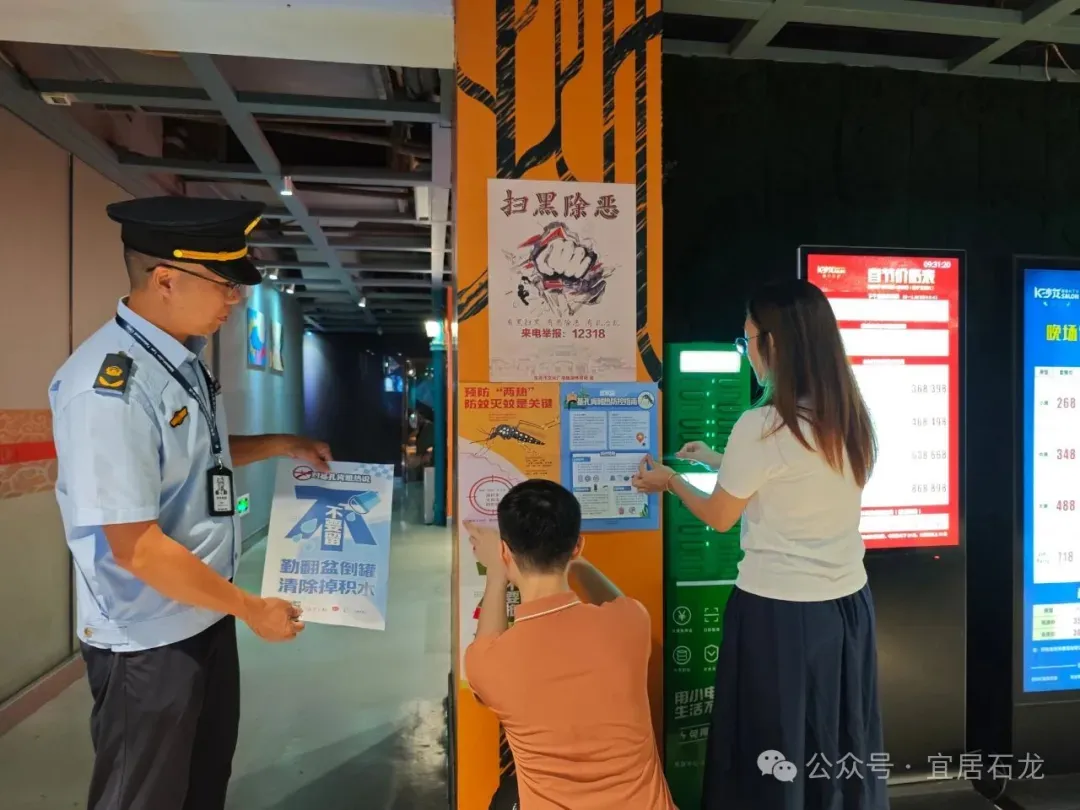 “防蚊灭蚊,关键在人。”基于此,石龙镇通过线上线下相结合的方式,织密宣传教育网。线上,67块电子屏覆盖全镇主要商圈、社区广场,每日滚动播放防治知识;广电网络植入的电视开机广告触达家家户户;“印象石龙”视频号推出情景剧、相声等短视频20条,“宜居石龙”公众号发布推文累计59篇。线下,工作人员深入农贸市场、工地宿舍等重点场所派发8万余份宣传海报及折页,进一步提升居民的防蚊灭蚊意识,为常态化推进虫媒防控工作奠定坚实基础。